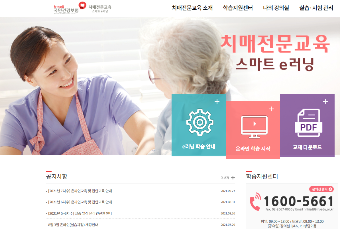 치매전문교육 스마트e-러닝 홈페이지