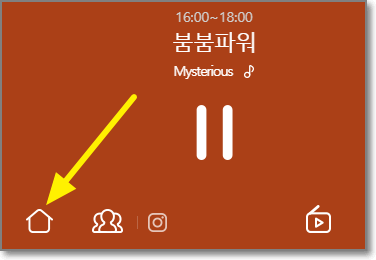 이번에는 고릴라 플레이어의 주요 기능에 대해서 알아보겠습니다. 우선 방송 중인 화면에서 아래쪽을 보면 집 모양이 있는데요. 이 집 모양 아이콘을 누르면 해당 방송 진행자의 홈페이지로 가게 됩니다.