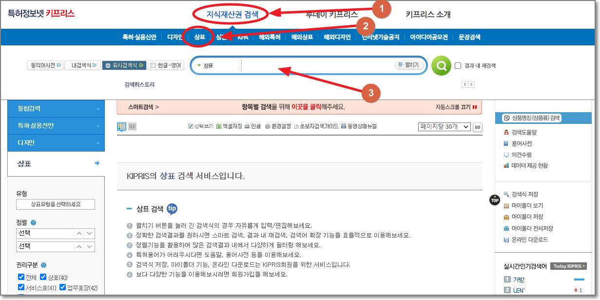특허정보 상표권 검색 홈페이지 키프리스 바로가기