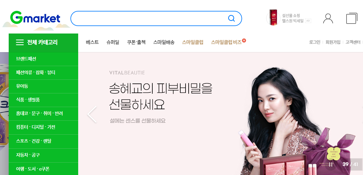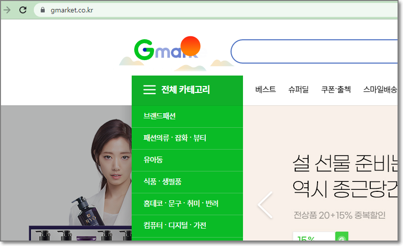 위의 지마켓 바로가기를 통해서 지마켓 창을 엽니다.